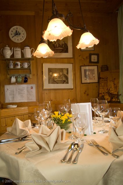 Verweilen Sie in unsere traditionellen Gaststube mit neu gestaltetem Biergarten oder genießen Sie ein mehrgängiges Weinmenü in unserer beliebten Zirbenstube.